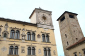 budynki mieszkalne z błękitnym niebem w Riva del Gardo we Włoszech