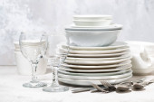Zdjęcie "Zestaw z czystymi naczyniami na stole w kuchni" może być wykorzystywane do celów osobistych i komercyjnych zgodnie z warunkami zakupionej licencji Royalty-free. Obraz jest dostępny do pobrania w jakości wysokiej rozdzielczości do 5760x3840.
