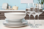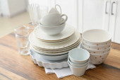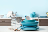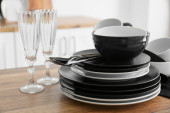 Zdjęcie "Zestaw z czystymi naczyniami na stole w kuchni" może być wykorzystywane do celów osobistych i komercyjnych zgodnie z warunkami zakupionej licencji Royalty-free. Obraz jest dostępny do pobrania w jakości wysokiej rozdzielczości do 5760x3840.