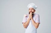 brodaty mężczyzna szef kuchni fartuchy restauracja smakosz pracy przemysł