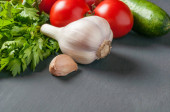 Różne pikantne warzywa na rustykalnym drewnianym tle