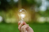 Żarówka ręczna, źródła energii odnawialnej, koncepcja energii naturalnej.