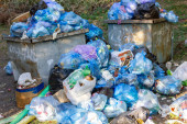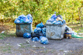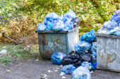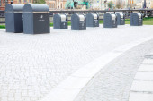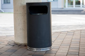 Kosz na śmieci. Uliczny śmietnik. Zbiornik na śmieci.