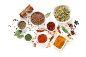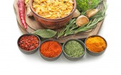 Tradycyjne indyjskie jedzenie i przyprawy na białym tle