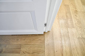 Zdjęcie "Zamknij ujęcie z białymi drzwiami z wentylacją w nowoczesnym domu z winylowymi deskami na podłodze." może być wykorzystywane do celów osobistych i komercyjnych zgodnie z warunkami zakupionej licencji Royalty-free. Obraz jest dostępny do pobrania w jakości wysokiej rozdzielczości do 5760x3840.