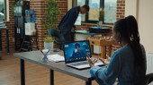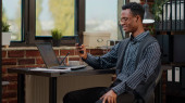 Afrykański amerykański biznesmen robi analizę rynku