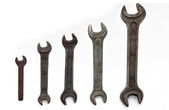 Stare narzędzia odizolowane na białym tle. Stary zestaw narzędzi.