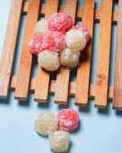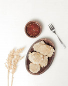 Zdjęcie "Cireng lub smażone aci. Cireng jest wytwarzany ze skrobi lub ciasta z mąki tapioki i jest zwykle dodawany z innymi składnikami, takimi jak kurczak lub kiełbasa, a następnie smażony. Cireng ma gumową konsystencję. Rozmycie ostrości" może być wykorzystywane do celów osobistych i komercyjnych zgodnie z warunkami zakupionej licencji Royalty-free. Obraz jest dostępny do pobrania w jakości wysokiej rozdzielczości do 5760x3840.