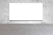 Duży pusty billboard na białej ścianie cementowej na zewnątrz budynku