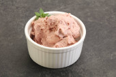 Pasztet wątroby w misce podał liście bazylii.