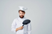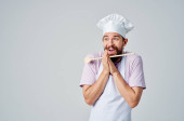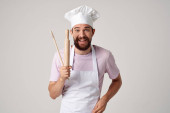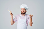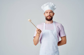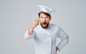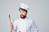 mężczyzna w mundurze kucharza z łyżką w ręku gotujący emocje