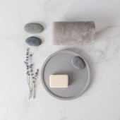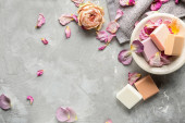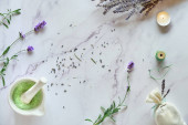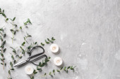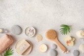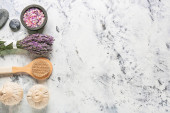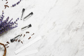 Igły akupunkturowe i kamień spa na białym tle, widok z góry