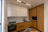 Zdjęcie "Kuchnia wnętrza nowoczesnego mieszkania" może być wykorzystywane do celów osobistych i komercyjnych zgodnie z warunkami zakupionej licencji Royalty-free. Obraz jest dostępny do pobrania w jakości wysokiej rozdzielczości do 5760x3840.
