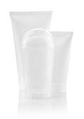 okrągły biały butelka i dwie rurki i butelki z pokrywką niebieski