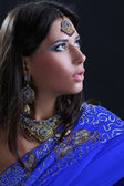 Młoda ładna kobieta w indyjskich niebieska sukienka