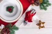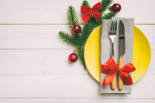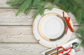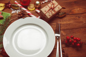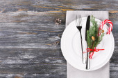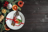 Czarny drewniany stół ze stylowym świątecznym stołem