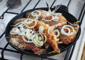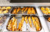 Samara, Rosja - 19 września 2021: Pokaz smacznego grillowanego mięsa z kurczaka w hipermarkecie łańcuchowym