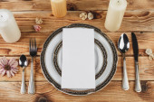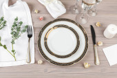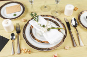 Widok z góry nakrycie stołu weselnego z dekoracjami