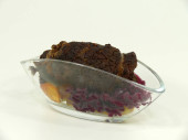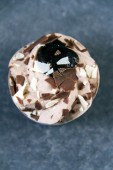 Kamień z agatu błękitnego i soczyste jagody na pomarańczowym stole