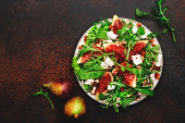 Zdjęcie "Sałatka arbuzowa z miękkim kozim serem, szpinakiem i kiełkami grochu na szarym tle, widok z góry, przestrzeń do kopiowania" może być wykorzystywane do celów osobistych i komercyjnych zgodnie z warunkami zakupionej licencji Royalty-free. Obraz jest dostępny do pobrania w jakości wysokiej rozdzielczości do 5760x3840.