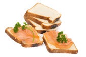 Pyszna kanapka z serem śmietankowym, łososiem i pietruszką na białym, górnym widoku