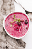 Zdjęcie "Arbuz gazpacho, tradycyjna hiszpańska letnia zimna zupa. Świeże warzywa i zielenina. Zielone drewniane tło, zbliżenie" może być wykorzystywane do celów osobistych i komercyjnych zgodnie z warunkami zakupionej licencji Royalty-free. Obraz jest dostępny do pobrania w jakości wysokiej rozdzielczości do 5760x3840.