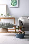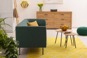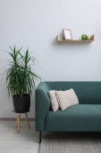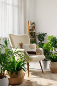 Salon z nowoczesnymi meblami i roślinami