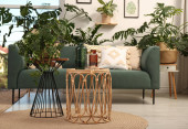 Zdjęcie "Salon z nowoczesnymi meblami i roślinami" może być wykorzystywane do celów osobistych i komercyjnych zgodnie z warunkami zakupionej licencji Royalty-free. Obraz jest dostępny do pobrania w jakości wysokiej rozdzielczości do 5760x3840.