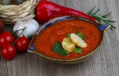 Zdjęcie "Wegańskie jedzenie, pikantne pomidory gazpacho zupa z toastami, dojrzałe warzywa, i świeże zioła bazylii. Czarny kamień betonowe tło, zbliżenie" może być wykorzystywane do celów osobistych i komercyjnych zgodnie z warunkami zakupionej licencji Royalty-free. Obraz jest dostępny do pobrania w jakości wysokiej rozdzielczości do 5760x3840.