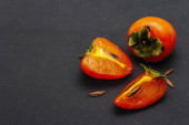 Dynie Hokkaido na czarnym kamiennym tle. Przydatne składniki do gotowania jesiennych potraw. Tradycyjny świąteczny element dekoracyjny na Halloween lub Święto Dziękczynienia, widok z góry
