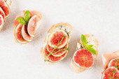 Koncepcja smacznego jedzenia z bruschettą z figą na białym tle
