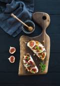 Koncepcja smacznego jedzenia z bruschettą z figą na białym tle