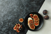 Płyta z bruschetta z fig na dwóch ton tła