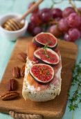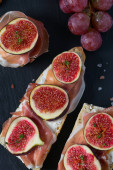 Koncepcja smacznego jedzenia z bruschettą z figami, zbliżenie