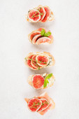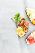 Smaczna bruschetta z figami na białym, teksturowanym tle