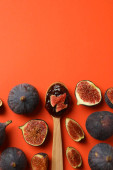 Słoik z dżemem figowym, składniki i łyżka na tle mięty
