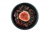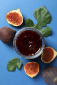 Miska z dżemem figowym i składniki izolowane na białym tle