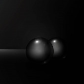 Abstrakcyjne monochromatyczne tło z białymi szklanymi kulkami na czarno. Kreatywny układ dla produktów wyświetlających. Przestrzeń kopiowania, renderowanie 3d