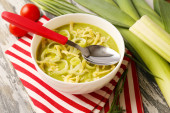 Zdjęcie "zupa z pora na stole" może być wykorzystywane do celów osobistych i komercyjnych zgodnie z warunkami zakupionej licencji Royalty-free. Obraz jest dostępny do pobrania w jakości wysokiej rozdzielczości do 5760x3840.