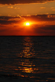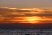 Zachód słońca nad oceanem w Santa Monica, California CA, USA.