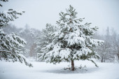 Zdjęcie "Zimowy krajobraz ze śnieżnymi drzewami i płatkami śniegu. Koncepcja świąteczna" może być wykorzystywane do celów osobistych i komercyjnych zgodnie z warunkami zakupionej licencji Royalty-free. Obraz jest dostępny do pobrania w jakości wysokiej rozdzielczości do 5760x3840.