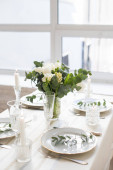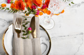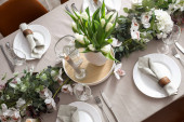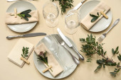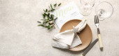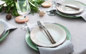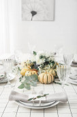 Nowoczesny stół z kartą i jesiennym wystrojem w restauracji