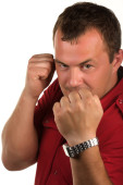 człowiek w pozie bokser