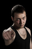 człowiek w pozie bokser
