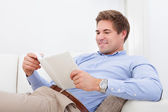 Zdjęcie "Człowiek korzystający z tabletu cyfrowego" może być wykorzystywane do celów osobistych i komercyjnych zgodnie z warunkami zakupionej licencji Royalty-free. Obraz jest dostępny do pobrania w jakości wysokiej rozdzielczości do 5760x3840.