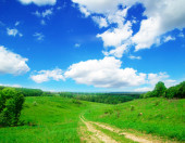 zielone pole z błękitne niebo