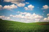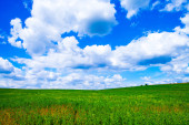 zielone pole z błękitne niebo