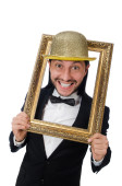 Zdjęcie "Człowiek z ramą obraz odizolowany na białym" może być wykorzystywane do celów osobistych i komercyjnych zgodnie z warunkami zakupionej licencji Royalty-free. Obraz jest dostępny do pobrania w jakości wysokiej rozdzielczości do 5760x3840.