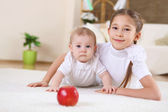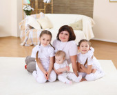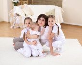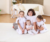młode matki z jej trzy córki w domu