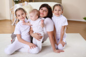 Zdjęcie "młode matki z jej trzy córki w domu" może być wykorzystywane do celów osobistych i komercyjnych zgodnie z warunkami zakupionej licencji Royalty-free. Obraz jest dostępny do pobrania w jakości wysokiej rozdzielczości do 5760x3840.